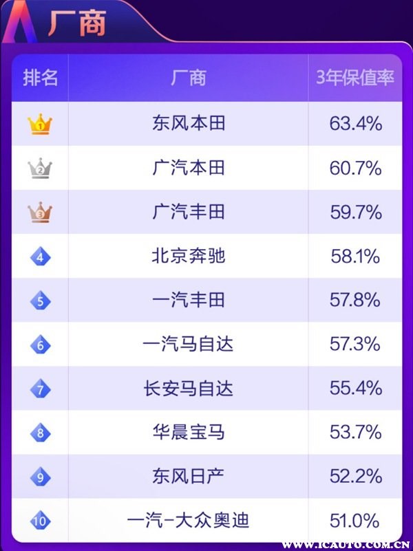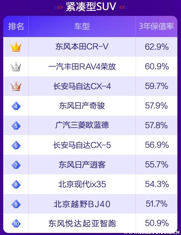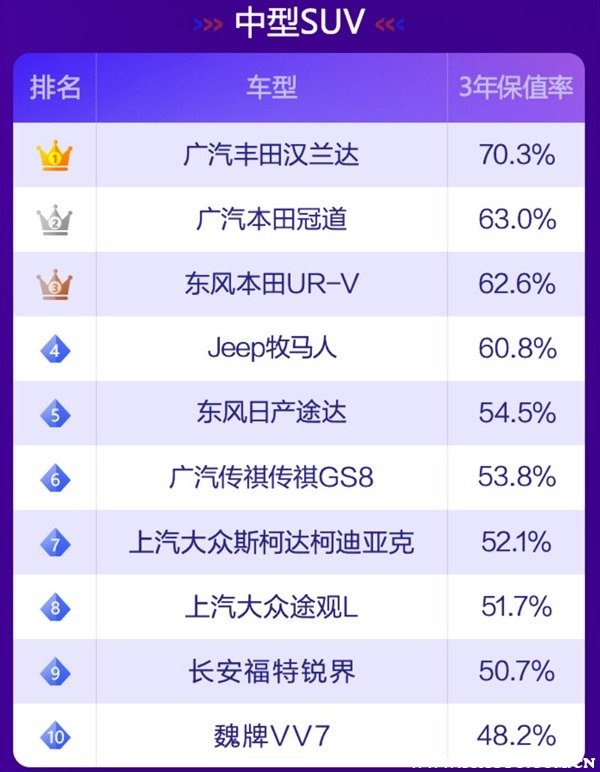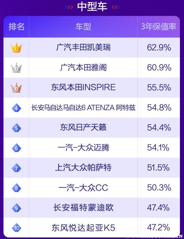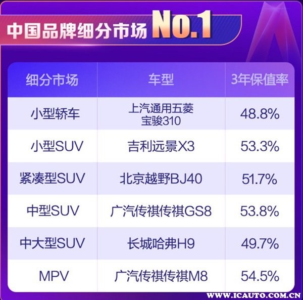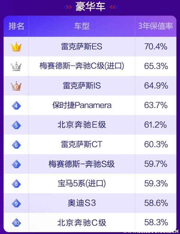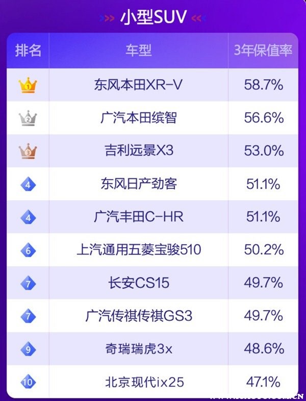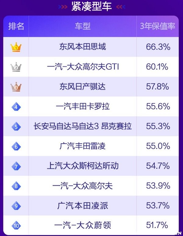 根據(jù)58汽車聯(lián)合J.D. Power頒布“紫檀獎·2021中國汽車保值率風(fēng)云榜”可以了解到,目前國內(nèi)汽車市場上保值率最高的車分別有如下車型: