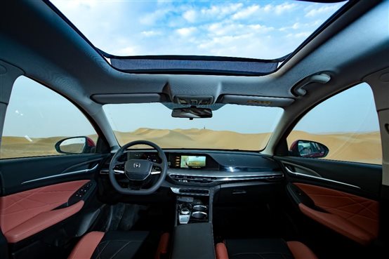 駛出冷藏車庫后,通過嘉賓現(xiàn)場觀測和操作,發(fā)現(xiàn)近80℃瞬時極限溫差下的熱脹冷縮并未影響到2022款逸動PLUS的車身剛性結(jié)構(gòu)穩(wěn)定性。且得益于出色的車身密封表現(xiàn),2022款逸動PLUS儀表盤、車燈均未出現(xiàn)水汽,智能AI小安、540°高清全景影像等功能亦可順暢使用。在順利通過“瞬時極限開箱”環(huán)節(jié)考驗后,2022款逸動PLUS沿著沙漠公路,踏上了探秘中國科學(xué)院新疆生態(tài)與地理研究所塔克拉瑪干沙漠研究站的征程。