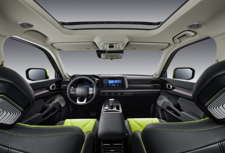 內(nèi)飾方面,車內(nèi)的顏色搭配非常大膽,采用了亮色的面料以及縫線,還加入了仿碳纖維飾板,配備了三輻式多功能方向盤、大尺寸的全液晶儀表以及中控屏,還要與坦克300車型相似的擋桿設(shè)計(jì)。該車將主打“音樂座駕”的設(shè)計(jì)理念,配備前排座椅律動(dòng)、18枚揚(yáng)聲器、64色律動(dòng)氛圍燈以及香氛系統(tǒng)等。