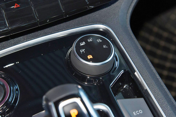 值得一提的是, 域虎9四驅模式中的4L低速模式是專為非鋪裝路面OFF-ROAD場景設定的,一旦遇到難走的越野路況,該模式下的發(fā)動機扭矩會被放大2.48倍,當后軸的伊頓式差速鎖鎖死,電腦自動將動力傳輸?shù)接懈街Φ能囕?,實現(xiàn)車輛的脫困自救,非常給力。