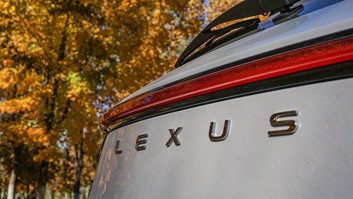 中網(wǎng)內(nèi)部有著更立體的幾何紋路填充,讓整個(gè)中網(wǎng)有了一定的質(zhì)感,再加上一定的熏黑處理,車頭的視覺沖擊更強(qiáng)。配上標(biāo)志性的雷克薩斯“閃電眼”與家族式的車頭設(shè)計(jì),從實(shí)車的效果來看,確實(shí)會比上一代車型顯得更為大氣