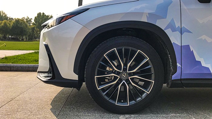 NX 350h這款車屬于第二代雷克薩斯NX,它的長寬高分別是4660、1865、1670mm,軸距為2690mm,所有的相關(guān)數(shù)據(jù)和上一代相比還是有所進(jìn)步的。車身側(cè)面來看很緊湊,硬朗的線條和折線塑造出不錯(cuò)的運(yùn)動(dòng)感,與雙色20英寸多條輻輪轂相匹配的是普利司通ALENZA 001系列偏舒適節(jié)能的輪胎,符合車輛定位。