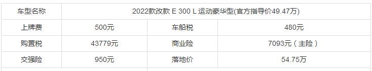 奔馳E級 2022款 改款 E 300 L 運動豪華型的官方車價為49.47萬,但因為不同區(qū)域、不同4s店的報價會有所差異,所以此處我們采用了奔馳E級 2022款 改款 E 300 L 運動豪華型的官方報價,具體信息如下