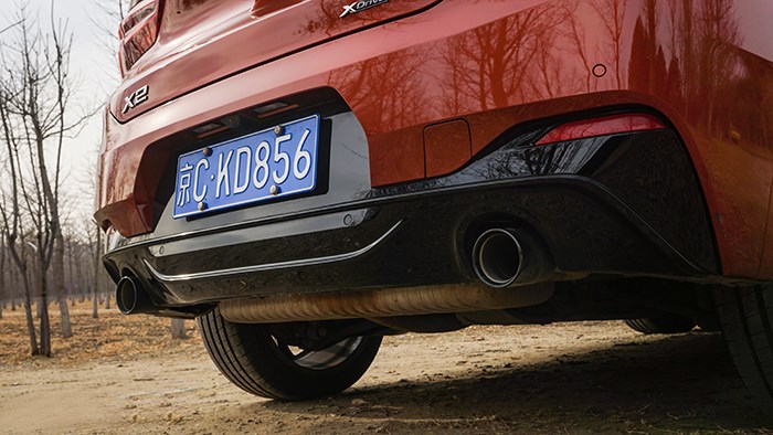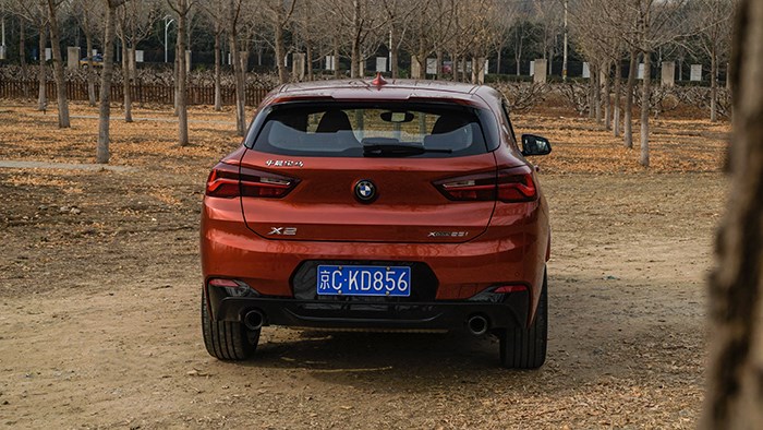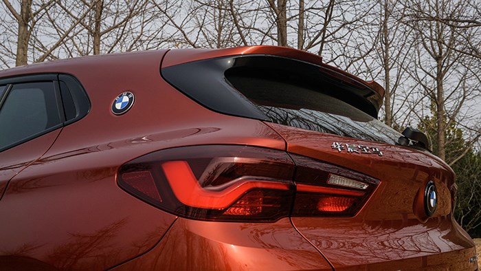 X2車尾的設(shè)計感覺很有肌肉感,顯的很寬大穩(wěn)健,兩條水平設(shè)計的線條起到了決定性作用,加上比較細的尾燈,從而在視覺上加大了車身的寬度,讓X2從尾部看也很有辨識度。