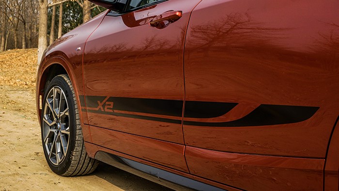 寶馬X2 xDrive25i 曜夜版的外觀設(shè)計很有未來感,相比其他款型它的最大特征就是全車原廠的拉花和獨特的輪轂樣式。這些原廠就給配置好的外觀裝飾免去了后期加裝的麻煩,何樂而不為呢。