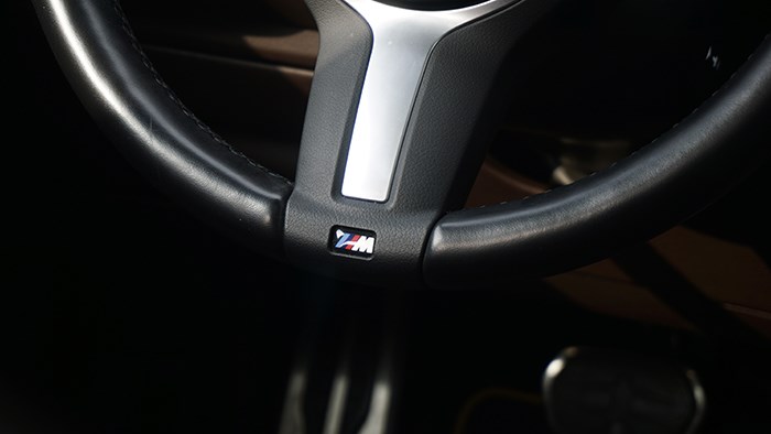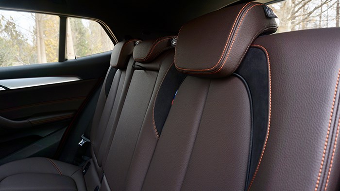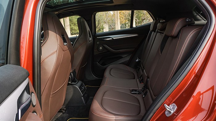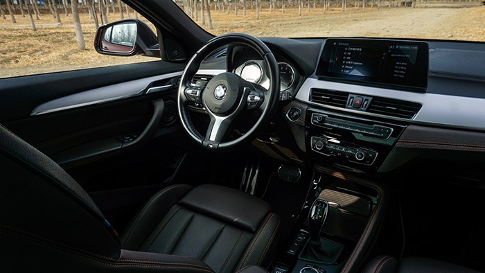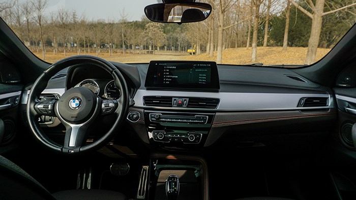 大家熟悉的帶有M標志運動方向盤也沒有缺席,設(shè)計簡單而做工細膩。音響采用了哈曼卡頓,音質(zhì)上乘。X2在空間上是夠用的,當把前排座椅調(diào)到最低時,身高170cm的體驗者坐在前排時頭部上方還是有著一拳四指的余量,在前排座椅不變的前提下,后排腿部還有兩拳的距離,頭部有一拳的余量。