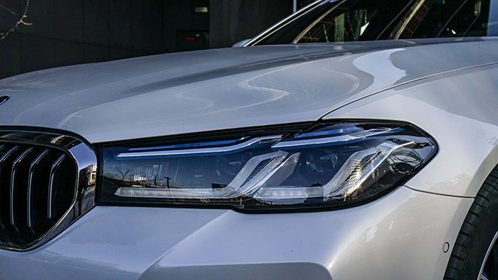 前大燈采用自適應(yīng)LED激光大燈照明,抽象化的天使眼仍然辨識度很高。保險(xiǎn)杠中央毫米波雷達(dá),以及前風(fēng)擋集成雙攝像頭讓這臺車具備了2.5級自動(dòng)駕駛功能,暗示了寶馬的科技含量。
