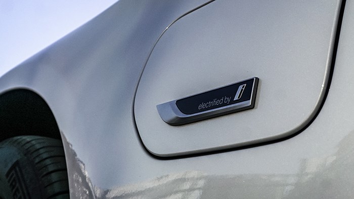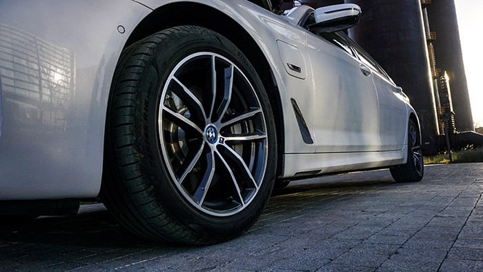 翼子板上有它的充電接口及“i家族”標(biāo)志,前后輪轂均采用18寸普利司通245/45 R18泰然者輪胎。電池容量17.7kWh,3.9小時(shí)可將電池充滿。NEDC純電續(xù)航里程95km,WLTC純電續(xù)航里程73km。長寬高5106×1868×1490mm,軸距3105mm。