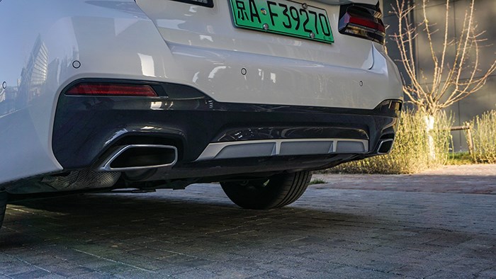 從車尾看,如果不看車牌,能看出這臺車身份的元素就更少了,雙出排氣更突出了它的運(yùn)動(dòng)氣勢。寶馬535Le 先鋒版M運(yùn)動(dòng)套裝使用了前雙叉臂式獨(dú)立懸掛、后多連桿式獨(dú)立懸掛。