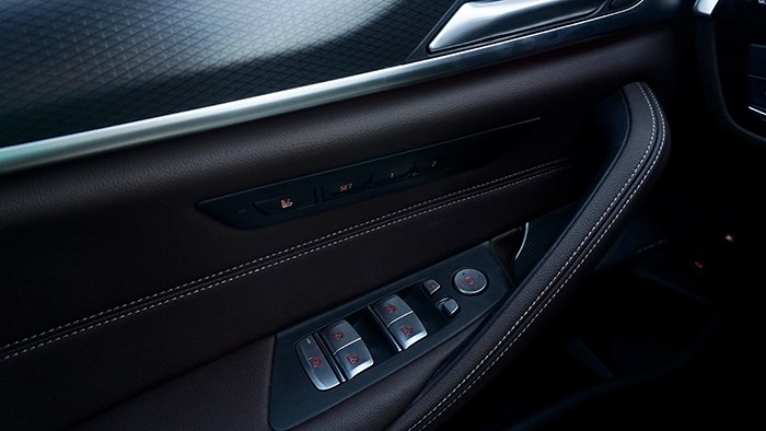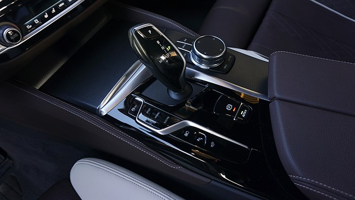 進(jìn)入駕駛室,幽幽的寶馬藍(lán)光帶將你包圍,各類按鍵和控制邏輯都按照人們熟悉的方式,或者寶馬一貫以來所堅(jiān)持的設(shè)計(jì)擺放得井井有條。同5系家族一樣,寶馬旗艦7系的一系列技術(shù)得到了下放,比如手勢控制、全觸控的空調(diào)面板等等。內(nèi)飾裝備了大量的軟性材質(zhì),達(dá)到了豪華車應(yīng)有的標(biāo)準(zhǔn),另外這臺試駕車配備了哈曼卡頓音響。