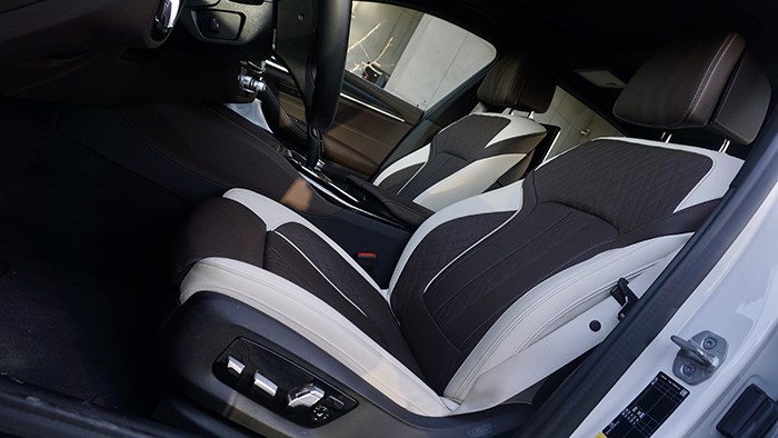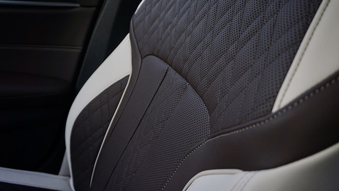 作為一臺中大型豪華轎車,5系插電混動(dòng)的座椅舒適性無可挑剔,雙色拼色的設(shè)計(jì)也讓眼前一亮,好感倍增,前排擁有12項(xiàng)電動(dòng)調(diào)節(jié),支撐到位,還帶有加熱及通風(fēng)功能。