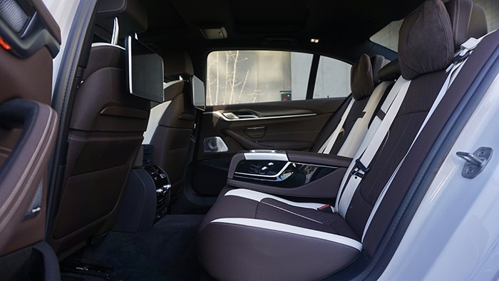 后排則是標(biāo)準(zhǔn)的商務(wù)風(fēng)格配置類似5系行政版,空間體驗(yàn)與普通版長軸5系無異,在這個(gè)級別屬于主流水平。這臺試駕車還在后排配置了座椅通風(fēng)、加熱、角度調(diào)節(jié),還帶有平板操作和后排頭枕娛樂系統(tǒng),當(dāng)然實(shí)際乘坐的感受是絕佳的。后備箱沒有發(fā)現(xiàn)被電池占據(jù)的空間,電池被巧妙的隱藏了起來,后備箱內(nèi)部非常規(guī)整,讓你察覺不出缺陷。此外,寶馬全系互聯(lián)功能沒有缺席,車主可通過手機(jī)App實(shí)時(shí)監(jiān)控車輛狀態(tài),得益于17.7kWh高密度鋰電池組,可以遙控打開車輛的空調(diào)。