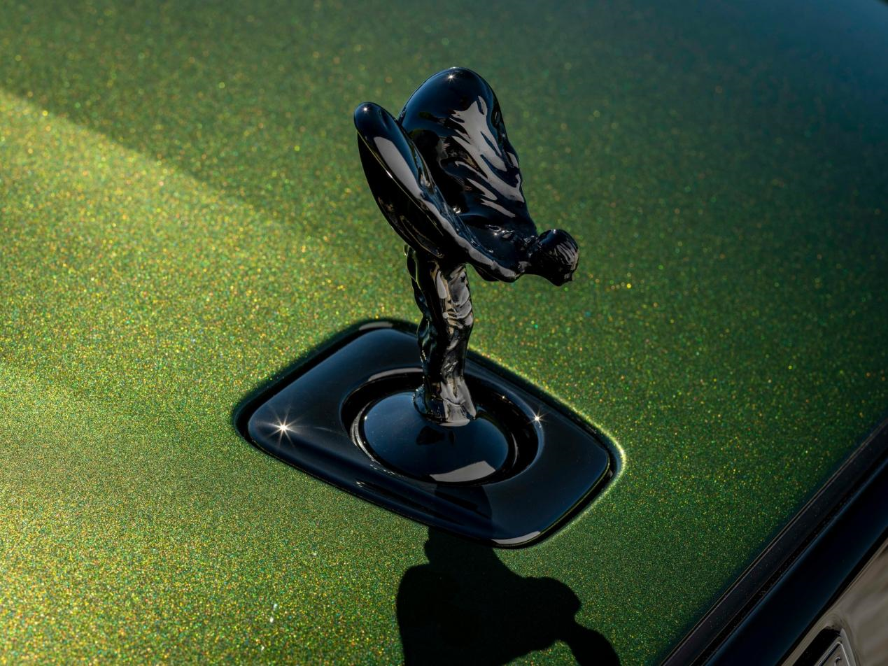 美國加州的圓石灘車展可謂全球聞名,勞斯萊斯為其特此打造了兩款古思特車型,以展現(xiàn)Bespoke高級定制能力。該典藏版車型飾以兩種閃耀涂裝——嵯峨野綠水晶飾面與融入閃金云母片的紅杉綠飾面,盡顯斑斕光輝。