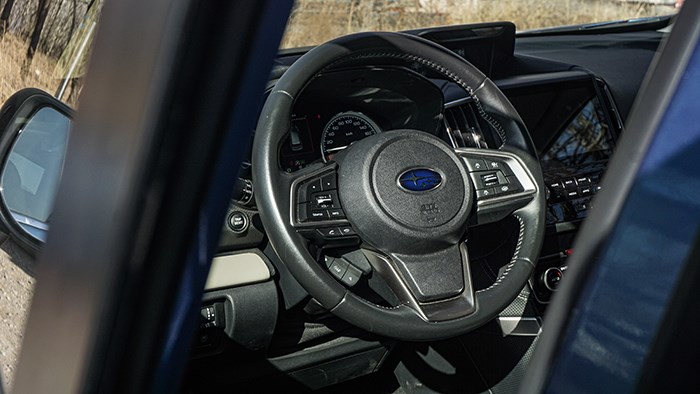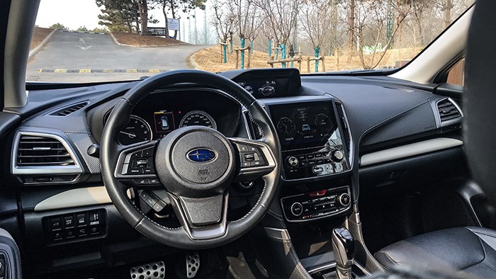 森林人的旗艦版配置上還有駕駛席座椅和后視鏡帶位置記憶、智能鑰匙系統(tǒng)(帶一鍵式點火啟動)、音響-導航系統(tǒng)、多功能彩色顯示屏、X-MODE(兩種模式)、EyeSight駕駛輔助系統(tǒng)、全車影像監(jiān)測系統(tǒng)、駕駛員監(jiān)測系統(tǒng)、自動駐車功能(AVH)、主動式扭矩引導系統(tǒng)(ATV)和斯巴魯后方盲區(qū)監(jiān)測預警系統(tǒng)(SRVD)。
