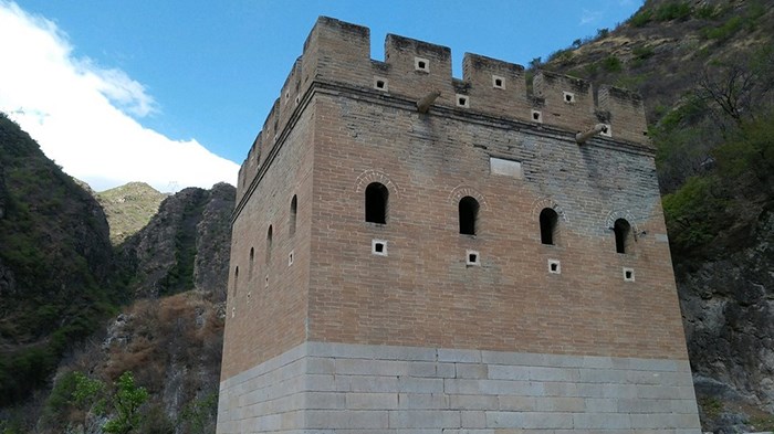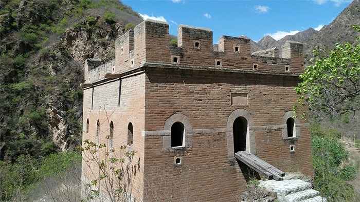 "沿河城、沿河口"長(zhǎng)城隸屬明代長(zhǎng)城內(nèi)三關(guān)之一的紫荊關(guān)管轄,扼守幾道三口、水口,是塞外通往 北京 的要沖之一,戰(zhàn)略位置非常重要,因此修建得非常給力,敵樓高大,城垣堅(jiān)固,易守難攻。如今,城堡尚在(有修復(fù)的痕跡),1#敵樓僅剩部分條石基礎(chǔ),2#敵樓已是遺跡難尋,3、4、5#敵樓保存基本完好,4#敵樓北側(cè)短墻僅剩部分毛石基礎(chǔ),被雜草灌木掩蓋。