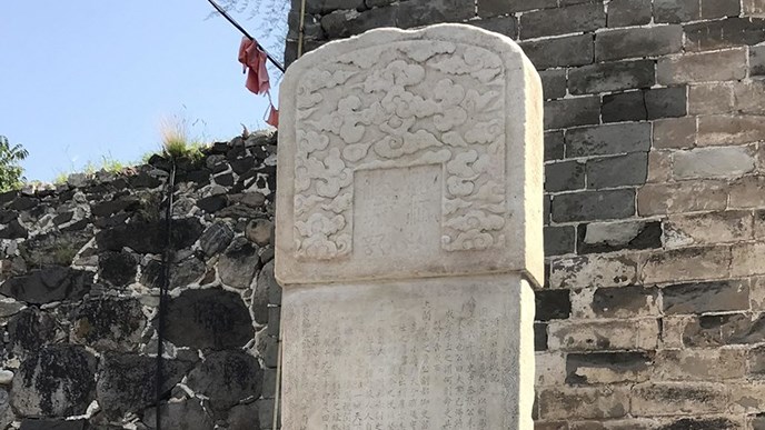 “無(wú)赤羽之警,藉公等策以期間,為此城也”?!肮手O(shè)險(xiǎn)守國(guó),要惟在任人哉”。邊城要塞,防御北方外族入侵,屯兵守備,歷朝修長(zhǎng)城,其初衷莫不如此。此碑原立于沿河城圣人廟,四百年風(fēng)雨折毀去上半,其余部分文字也風(fēng)蝕嚴(yán)重,難以辨認(rèn)了。《沿河城守備府碑》《沿河口修城記碑》這兩塊石碑現(xiàn)存于沿河城辦事處。