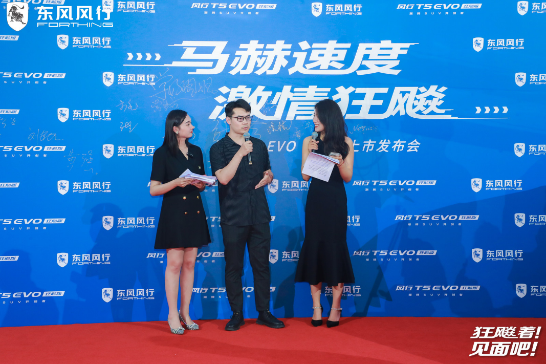 在風行T5 EVO狂飚版上市發(fā)布會現(xiàn)場,車友們受邀參與直播互動,分享自己選擇風行T5 EVO的原因、駕駛體驗、參加交流會及發(fā)布會的感受等,并與直播間粉絲熱情互動。