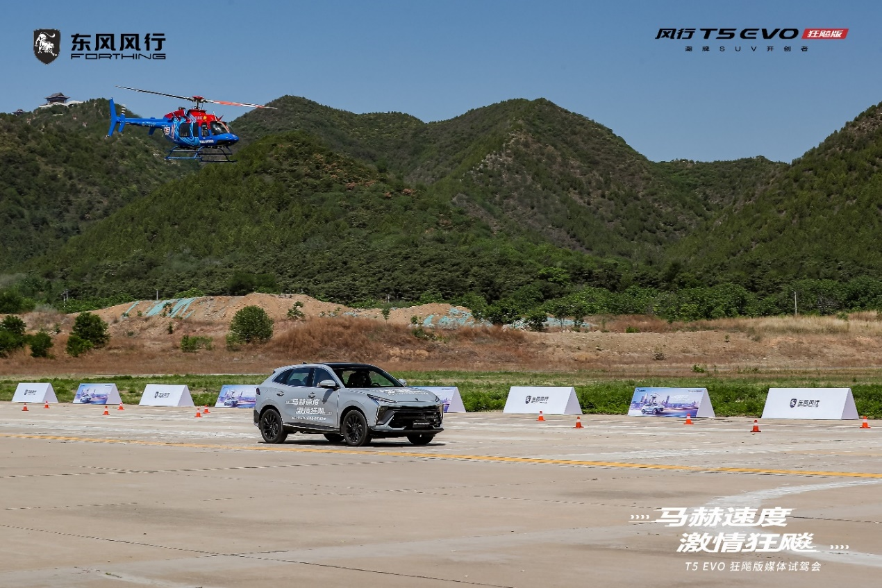 而在風(fēng)行T5 EVO狂飚版上市前夕的北京密云機(jī)場(chǎng)試駕會(huì)上,它就與一架貝爾407 Gxi直升機(jī)開啟了一場(chǎng)刺激的天地競(jìng)速,既展示出了它強(qiáng)大的動(dòng)力性能,又為年輕人們帶來了一場(chǎng)刺激、有趣、充滿視覺沖擊力的感官盛宴,吸引到了無(wú)數(shù)年輕人的側(cè)目。