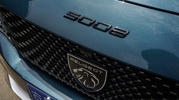 新款5008外觀最明顯的變化是車頭設(shè)計(jì),散射狀進(jìn)氣格柵搭配全新盾牌獅子頭車標(biāo)Logo,兩側(cè)翼子板也有鑲嵌這個(gè)全新的徽章logo。