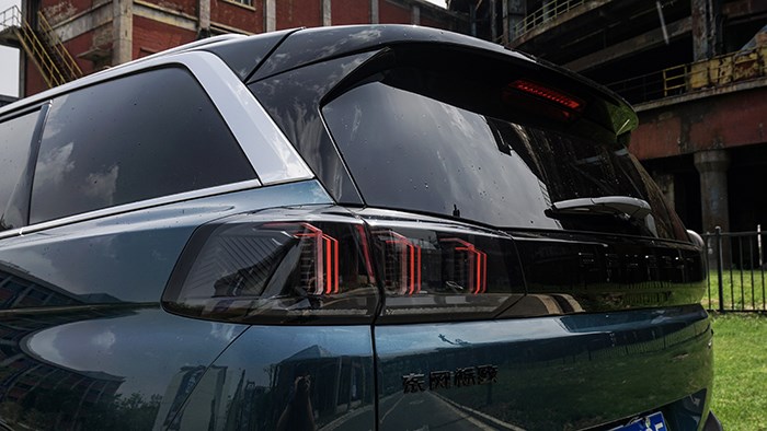 車尾部分,后排的黑色隱私玻璃,搭配上懸浮的車頂,以及橫貫尾部的黑色飾板將尾燈、尾標(biāo)融為一體又與前大燈組呼應(yīng)。尾燈組內(nèi)部采用了更加復(fù)雜的多片式立體結(jié)構(gòu),LED光源點(diǎn)亮后很有高級(jí)感。