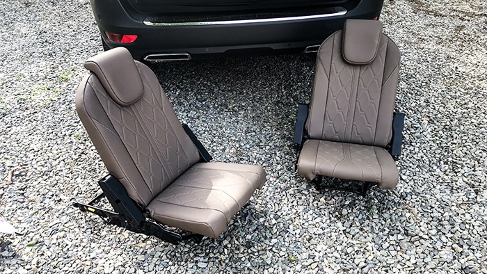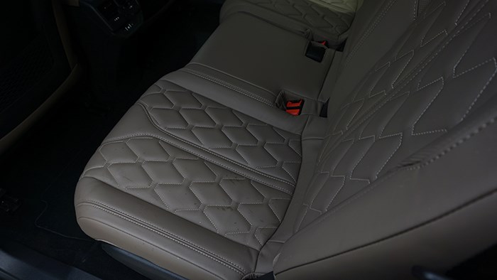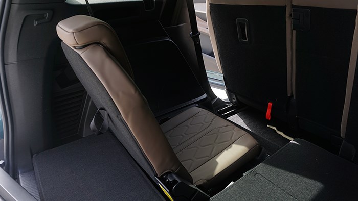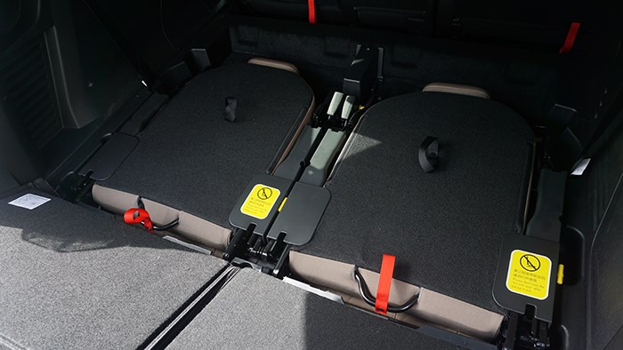 第三排座椅可偶爾臨時(shí)使用。在郊游野營(yíng)時(shí)還可以直接拆下使用,畢竟在戶外,皮質(zhì)座椅的舒適性可是傳統(tǒng)釣魚凳所不能企及的。