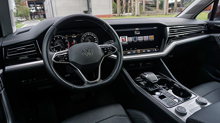 這一代的大眾途銳在內(nèi)飾的中心部分由寬大而典雅的儀表板構(gòu)成,中控顯示屏略微偏向駕駛座一側(cè),便于駕駛員的操作。數(shù)字駕駛艙Innovision Cockpit形成數(shù)字儀表(12英寸數(shù)字液晶儀表盤)和Discover Premium信息娛樂系統(tǒng)(15英寸觸摸屏)的組合。這兩塊液晶顯示屏的界面顯示也十分細(xì)膩,營(yíng)造了很高的豪華感。