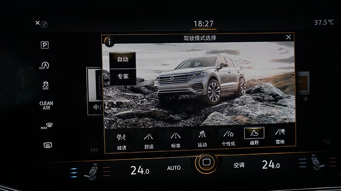 車輛標(biāo)配的4MOTION恒時(shí)四驅(qū)系統(tǒng),最高可傳輸1000牛.米的驅(qū)動(dòng)扭矩。帶有非對(duì)稱動(dòng)態(tài)扭矩分布功能的自鎖差速器作為車輛前后軸的分動(dòng)箱。最高70%的驅(qū)動(dòng)扭矩可傳送至前軸,最高80%的驅(qū)動(dòng)扭矩可傳送至后軸。駕駛者可以從娛樂信息系統(tǒng)和/或4MOTION恒時(shí)四驅(qū)系統(tǒng)主動(dòng)控制的相關(guān)菜單中選擇五種駕駛模式。