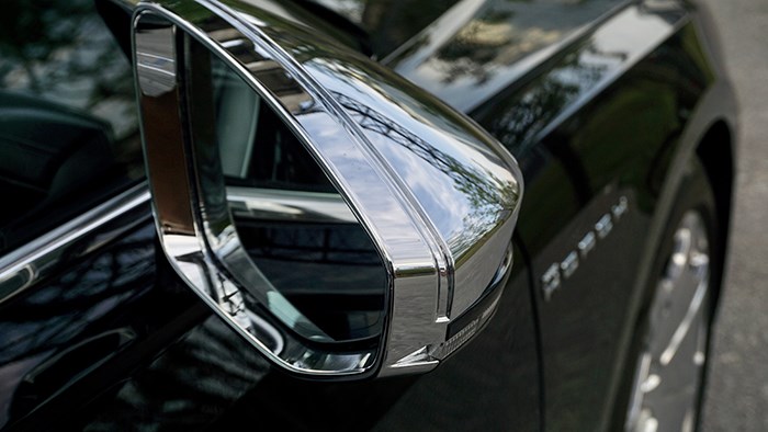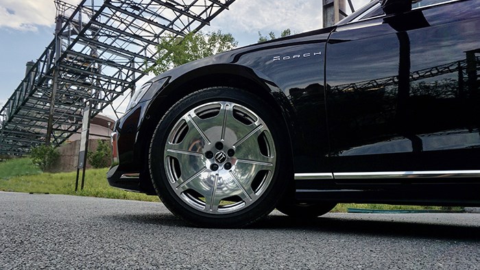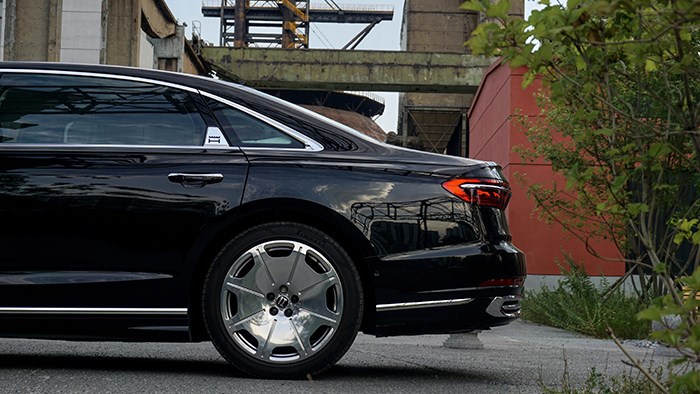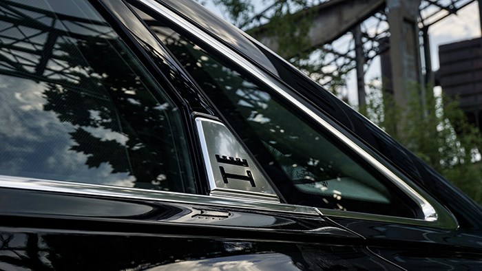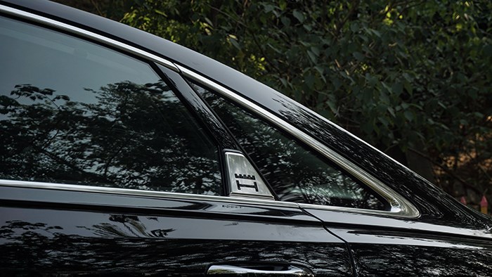 C柱附近的H王冠專屬徽章是車身側(cè)面特別引人注意的一處設(shè)計(jì),也顯示出這臺加長猛獸絕不普通。