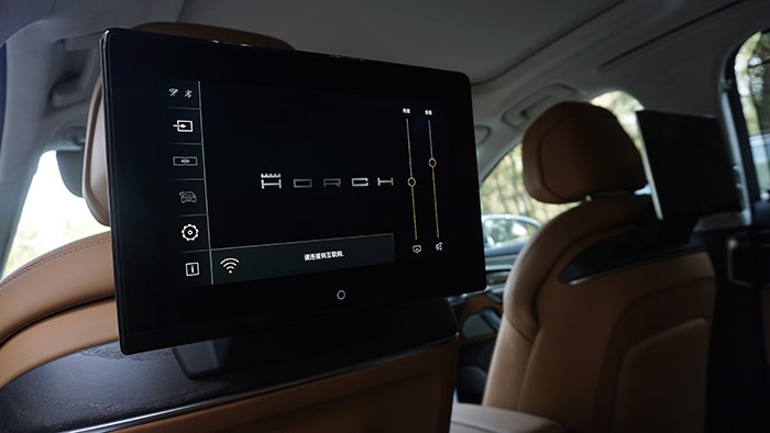 由于奧迪A8L Horch創(chuàng)始人版更加注重后排的乘客體驗(yàn),所以其內(nèi)飾部分豪華感營造的也非常到位。后排左右兩側(cè)均配備了娛樂屏、電動(dòng)遮陽簾和小桌板,方便老板們娛樂和辦公。