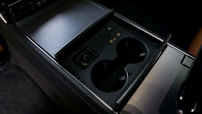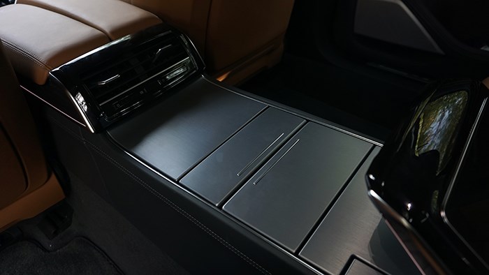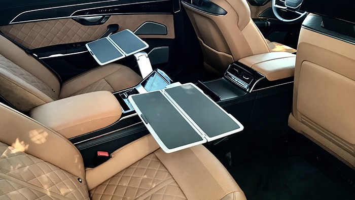 后排中央扶手抬起后,左右各有一個(gè)小桌板可以拉出,方便后排乘客臨時(shí)辦公使用。這不僅是Horch創(chuàng)始人版高于普通版A8L的配置,更是對后排乘客需求的充分滿足。