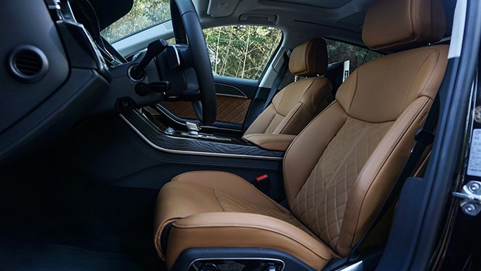 座椅方面,A8L Horch霍希創(chuàng)始人版為主流D 級別旗艦車型常見的四座椅布局,內(nèi)飾內(nèi)部大面積使用真皮和實(shí)木進(jìn)行搭配,突出視覺上的豪華感受。座椅擁有8種不同的按摩模式的前/后排座椅按摩功能。主駕駛16向調(diào)節(jié)的真皮座椅,能給你全方位的舒適、包裹和安全。