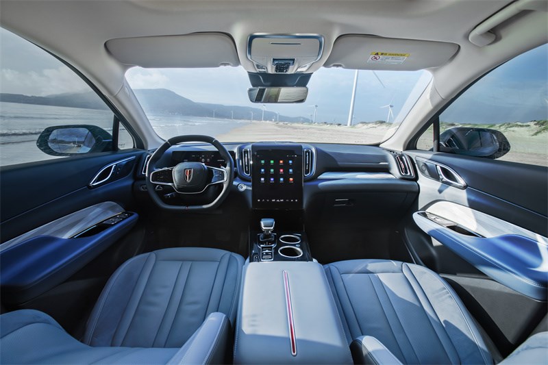 傾“新”顏值,大有風范。紅旗HS3創(chuàng)新應用紅旗家族式設計語言,車身前部,前大燈和“飛翼”飾條貫穿結合,精巧協(xié)調、富于韻律之美。個性熏黑車頂,活力四射。車身側面,矯健修長的腰線配合“振翅山河”側旗標,盡顯國潮風范。車身尾部,上下分體式設計巧妙靈動,尾燈猶如展開的翅膀,點亮效果驚艷絕倫。紅旗HS3的內飾設計,在紅旗經(jīng)典中軸對稱布局基礎上注入強烈的運動氛圍。桶式座椅給予駕駛者極強的包裹感,12.6英寸曲面中控大屏和253色氛圍燈,讓風范內在更添精致。
