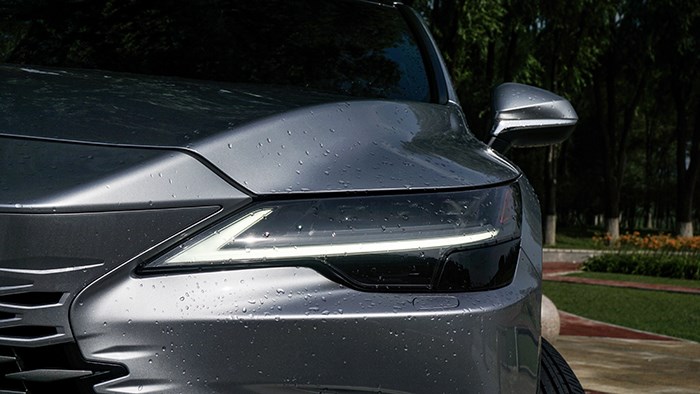 “L”型LED矩陣前大燈造型充滿科技感,技術(shù)含量同樣很高,搭載了 BladeScan? 極速旋鏡式遠(yuǎn)光燈自適應(yīng)控制系統(tǒng) AHS。前大燈組是由三個矩陣式遠(yuǎn)近光 LED 光源和?個獨?的 BladeScan? 專?單元組成,并通過前擋風(fēng)頂部的攝像頭檢測前方光線。
