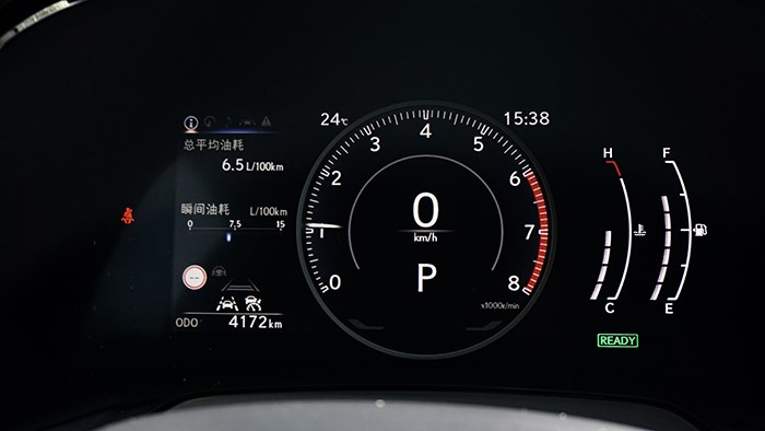 真皮包裹的電動調(diào)節(jié)方向盤手感極佳,皮質(zhì)相當(dāng)細(xì)膩。多功能按鍵的分布也是清晰明了,觸手可及。儀表盤布局雖然也是較為傳統(tǒng)的設(shè)計樣式,但指針以及儀表表面的細(xì)節(jié)質(zhì)感處理得相當(dāng)精致細(xì)膩,多功能信息顯示屏的氛圍照明還可以根據(jù)駕駛模式的不同,呈現(xiàn)不同照明效果。