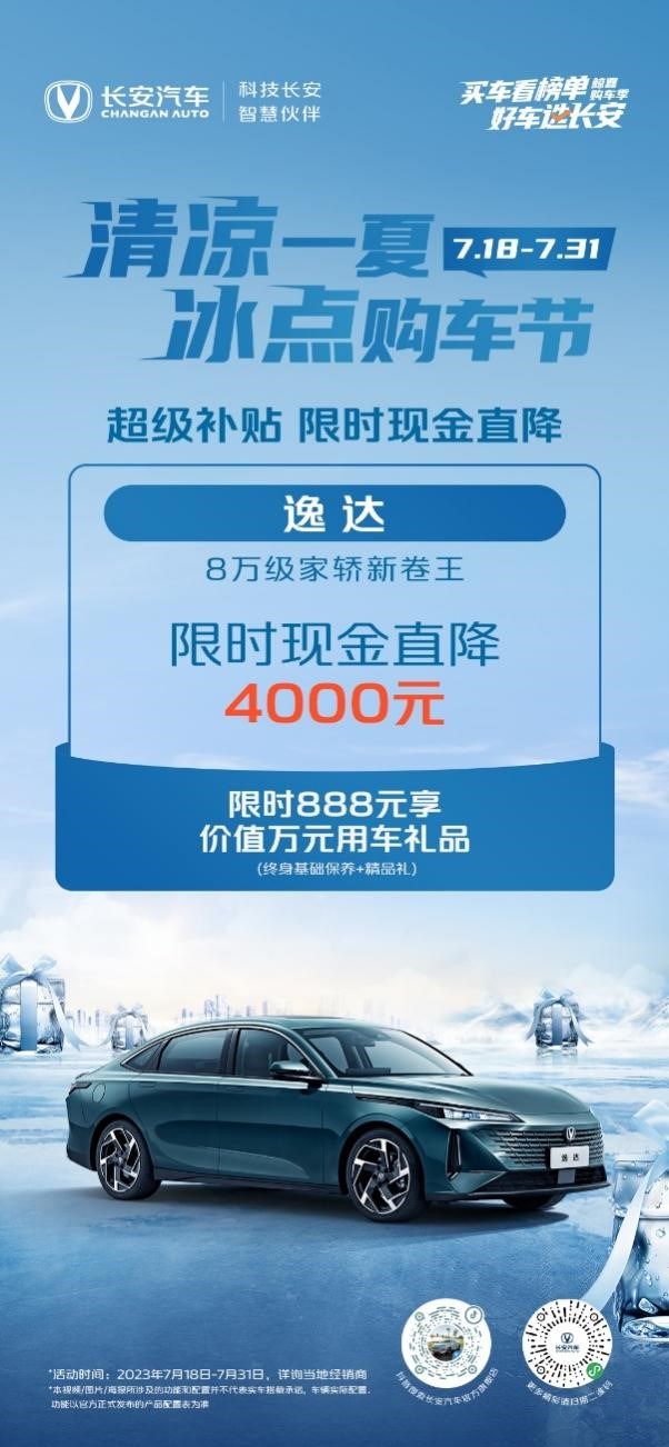 現(xiàn)金直降4000元,長安逸達夏日出游季購車福利來襲