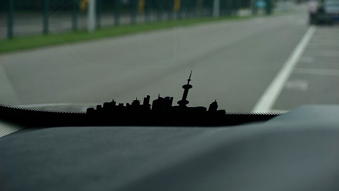 主駕駛前擋風(fēng)玻璃,還有上海外灘剪影圖,可謂是不期而遇的小驚喜。