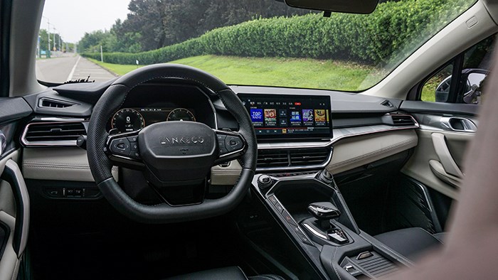 進(jìn)入車內(nèi)第一眼就會(huì)被它懸浮式的中控屏吸引住目光,擋桿區(qū)域的按鍵也有了全新的布局,與領(lǐng)克車系之前使用的內(nèi)飾設(shè)計(jì)方案相比明顯年輕不少。