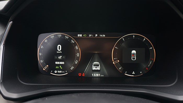 10.25英寸的全液晶儀表盤(pán)顯示效果較為細(xì)膩,界面UI設(shè)計(jì)也很有特點(diǎn)。此外,儀表盤(pán)在不同駕駛模式下,會(huì)呈現(xiàn)出不同的主題色調(diào)。