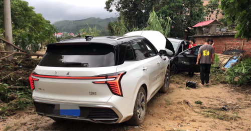 7月30日,泉州紅旗車主劉先生的車輛,被洪水沖走并被困于淤泥之中。接到救援電話后,泉州紅旗體驗(yàn)中心工作人員冒著大雨立即奔赴現(xiàn)場(chǎng)拯救車輛,先是將車輛中貴重物品取出、整理,并第一時(shí)間交到車主手上,后又租用小型挖掘機(jī),經(jīng)過(guò)4個(gè)多小時(shí)的努力,終于將車輛挖出并運(yùn)離現(xiàn)場(chǎng)。