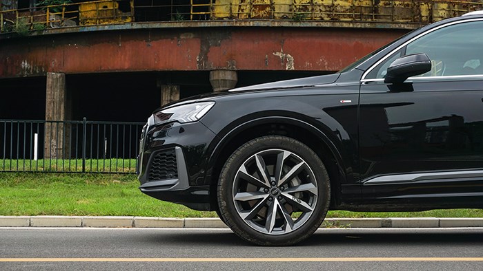 車身側(cè)面,奧迪Q7的長寬高分別為5067*1970*1715mm,軸距為2999mm,車身尺寸較老款車型微調(diào),但設(shè)計(jì)基本與老款車型一致。此外,由于此次試駕的是一款S Line車型,下方在S Line套件的加持下層次感更強(qiáng)。