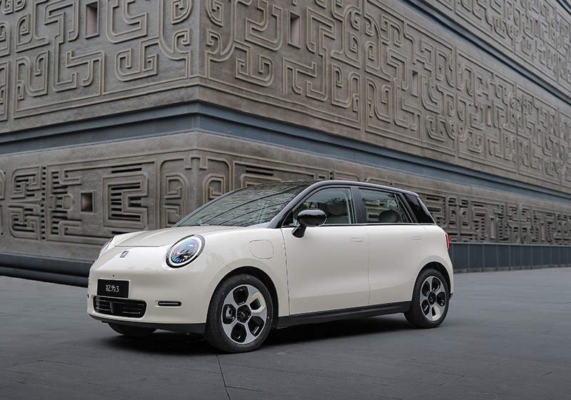 外觀方面,新車走可愛路線,車頭最搶眼的是一對(duì)橢圓形大燈組,內(nèi)部燈源布局較有層次感,官方稱之為泡泡宇宙美學(xué)。車尾尾燈對(duì)應(yīng)的則是圓矩形,另外還采用全新LOGO。花瓣式輪轂、橢圓外后視鏡也是常用搭配設(shè)計(jì)。車身尺寸方面,新車長(zhǎng)寬高分別為4025/1770/1560mm,軸距為2620mm。