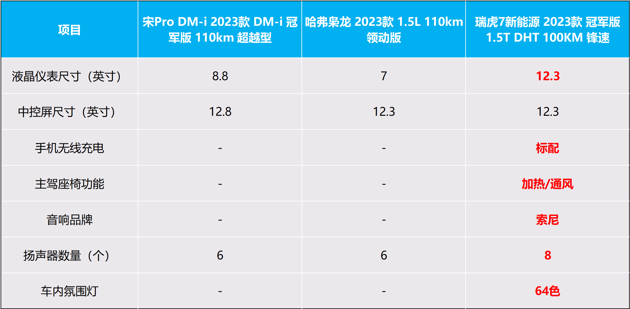 總體來說,相比宋Pro DM-i和哈弗梟龍,瑞虎7新能源在保證旅途舒適性和娛樂性的配置方面更具優(yōu)勢。能夠在漫長的旅途中減輕駕駛者的負擔(dān),更能滿足車內(nèi)每位乘員的娛樂體驗,讓旅途時光也能創(chuàng)造出十一出游的高光時刻。