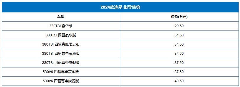 上汽大眾2024款途昂上市 售價(jià)為29.50-40.50萬