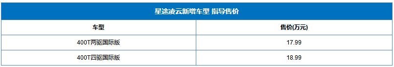 10月10日,星途凌云新增2款車型上市,售價區(qū)間17.99-18.99萬。