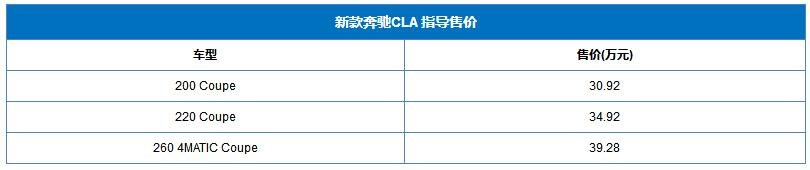 新款奔馳CLA正式上市,共推出3款車型,售價區(qū)間為30.92-39.28萬。