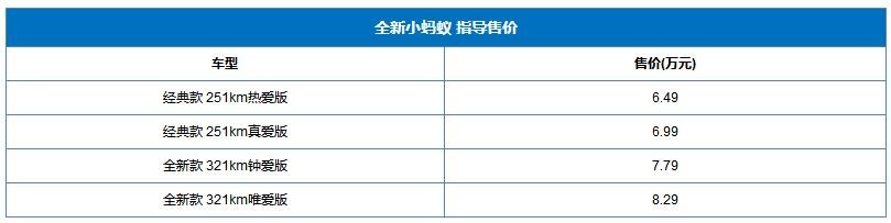 奇瑞新能源新款小螞蟻上市 售價(jià)為6.49-8.29萬(wàn)
