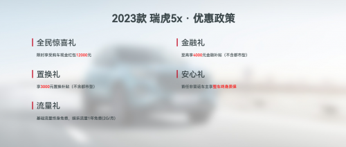 錯過后悔一整年!2023款瑞虎5x限時綜合優(yōu)惠15000元,貸款再享4000遠金融貼息