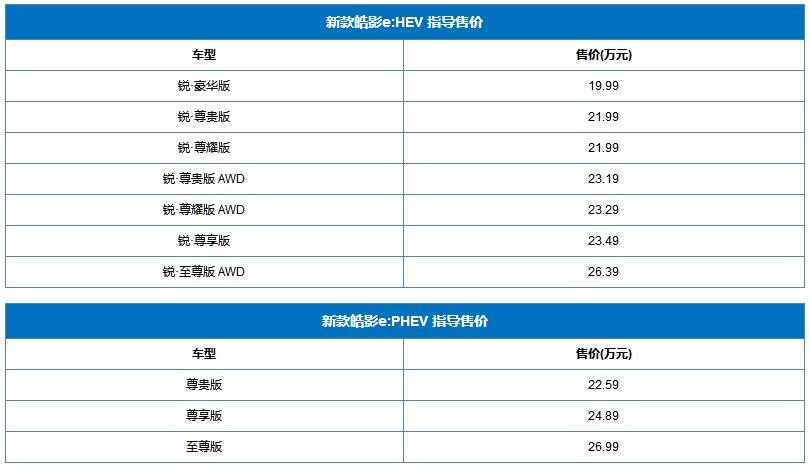 新款皓影e:HEV/e:PHEV正式上市 售價(jià)19.99萬起