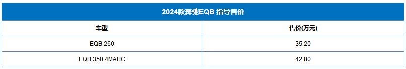 2024款奔馳EQB正式上市 售價(jià)35.20-42.80萬(wàn)