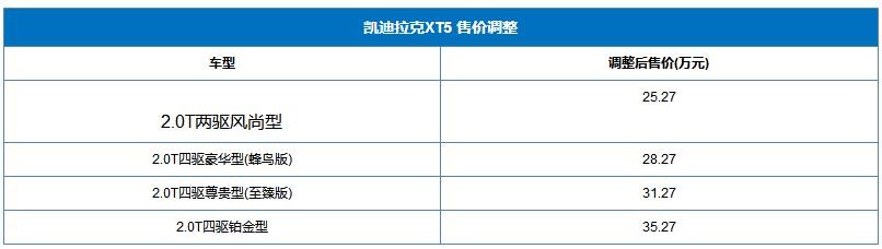 近日,上汽通用凱迪拉克XT5全系降價10萬元,調整后售價區(qū)間為25.27-35.27萬。